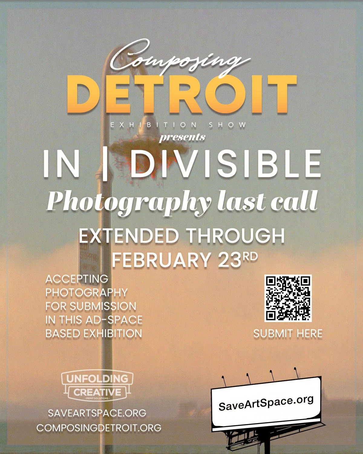 SaveArtSpace x ComposingDetroit is proud to present In|Divisible, a public art exhibition on ad space in Detroit, MI opening April 3, 2026, curated by ComposingDetroit.