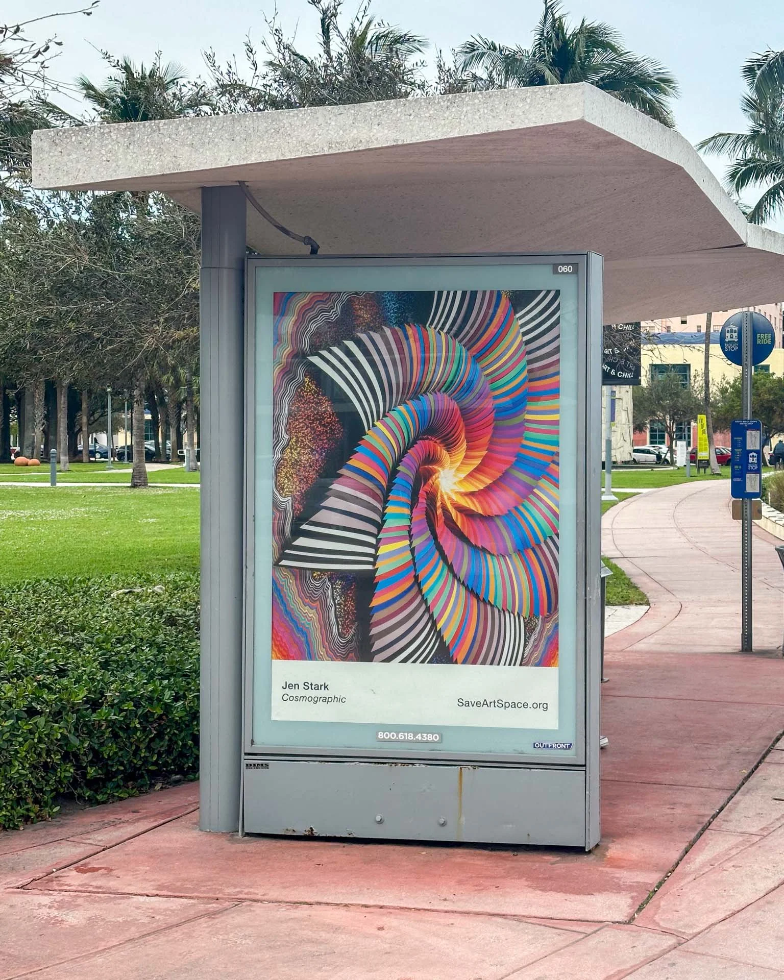SaveArtSpace is proud to present Patterns in Nature, a public art exhibition on bus shelter ad space in Miami Beach, Fl during Art Basel & Miami Art Week, starting December 1, 2023, curated by Jen Stark.